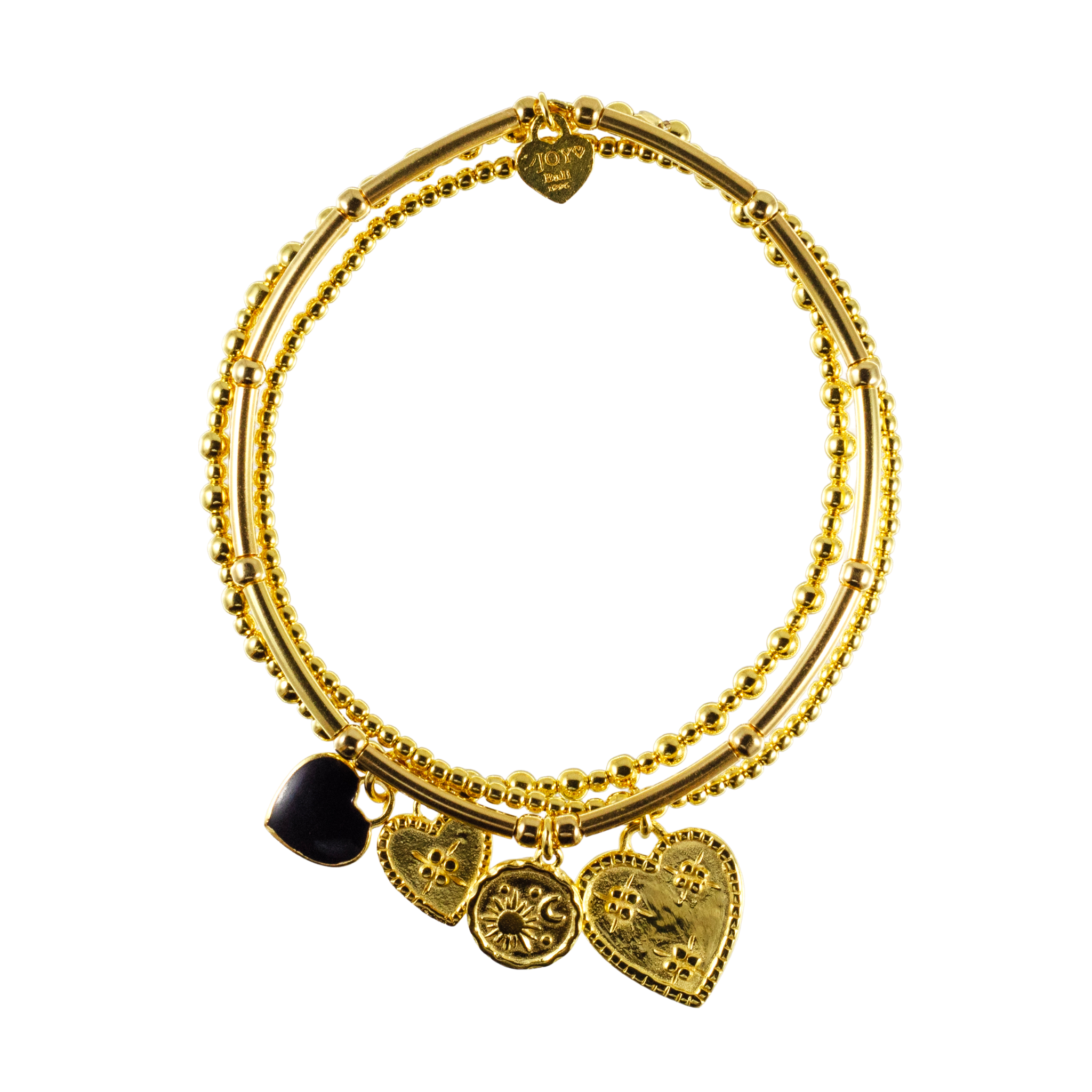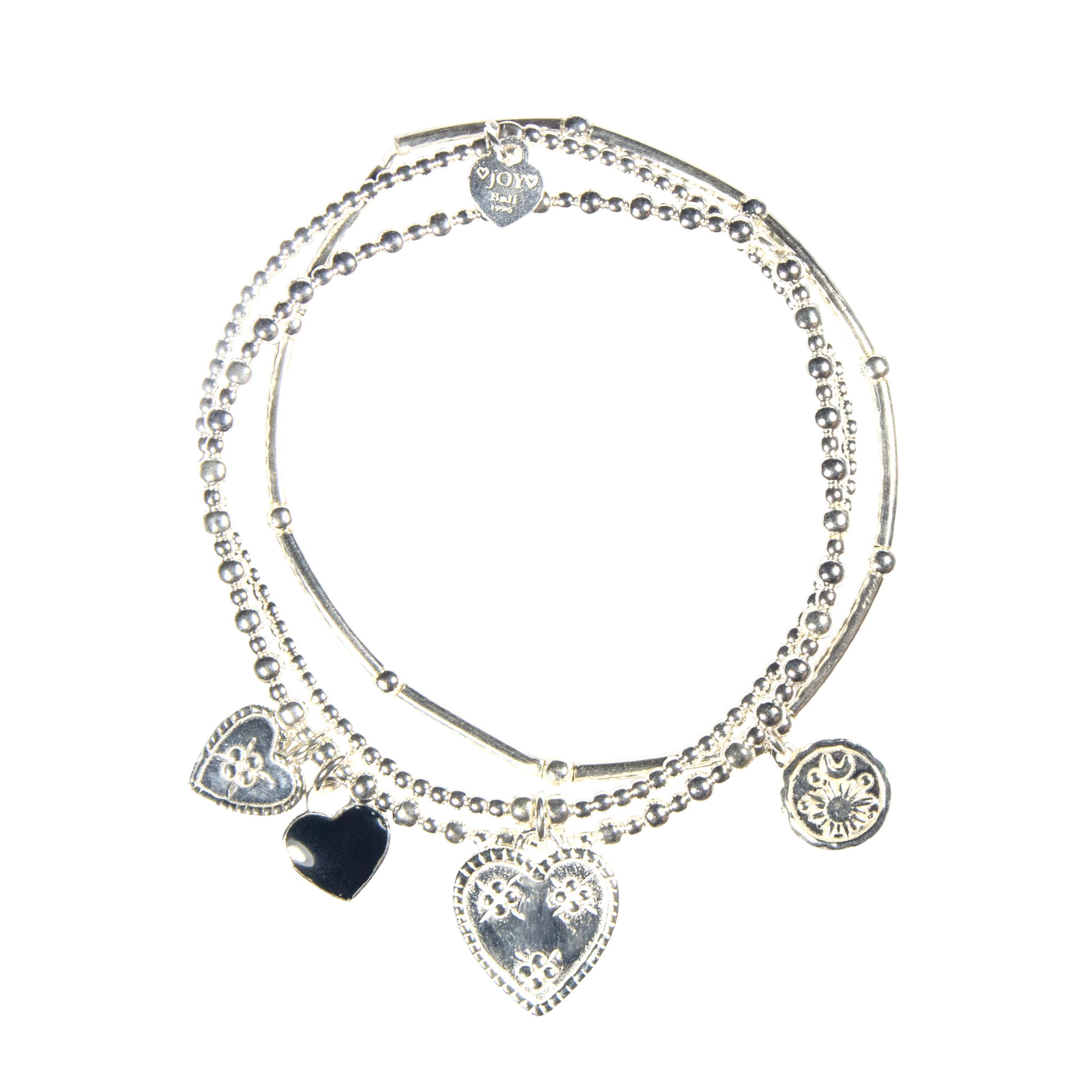 Look for the Joy logo near the crimp bead—a symbol of quality and happiness. The colorful heart charm makes this set a must-have for the summer season.